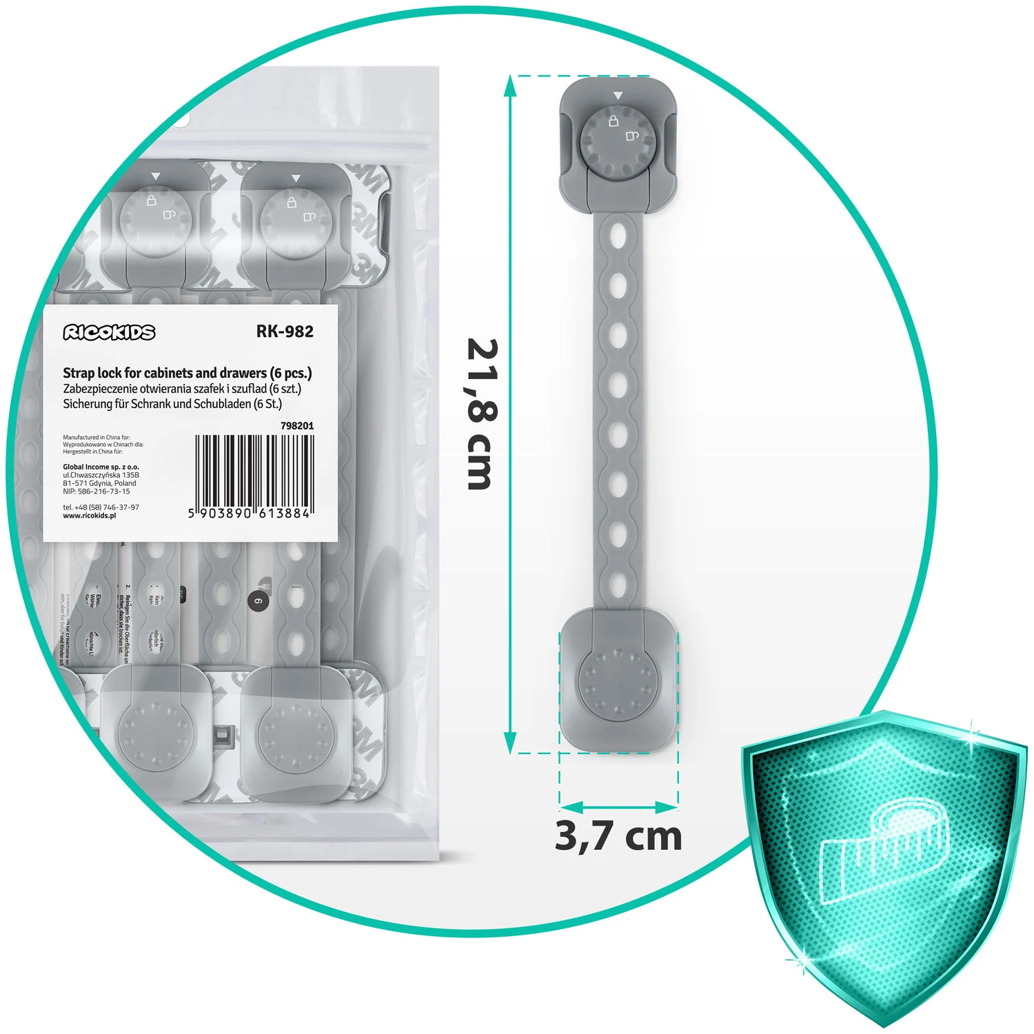 Tänu vastupidavatele ja lihtsa tegumoega turvalukkudele jääb riidekapi, sahtli ja kapi sisu lapsele kättesaamatuks. Universaalne ja vastupidav kaitse paigaldatakse vastupidava 3M teibi abil, nii ei kahjusta need mööbli pinda.