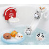 Komplekt pakub mitmeid mänguvõimalusi – näiteks loomade libistamine liumäelt alla, nende püüdmine sõelaga, mängukorvi viskamine ja vaba veepinnal hõljumine. Iminappide kasutamine võimaldab valitud elemente kindlalt kinnitada siledatele pindadele, näiteks vanni seintele või vannitoa plaatidele.