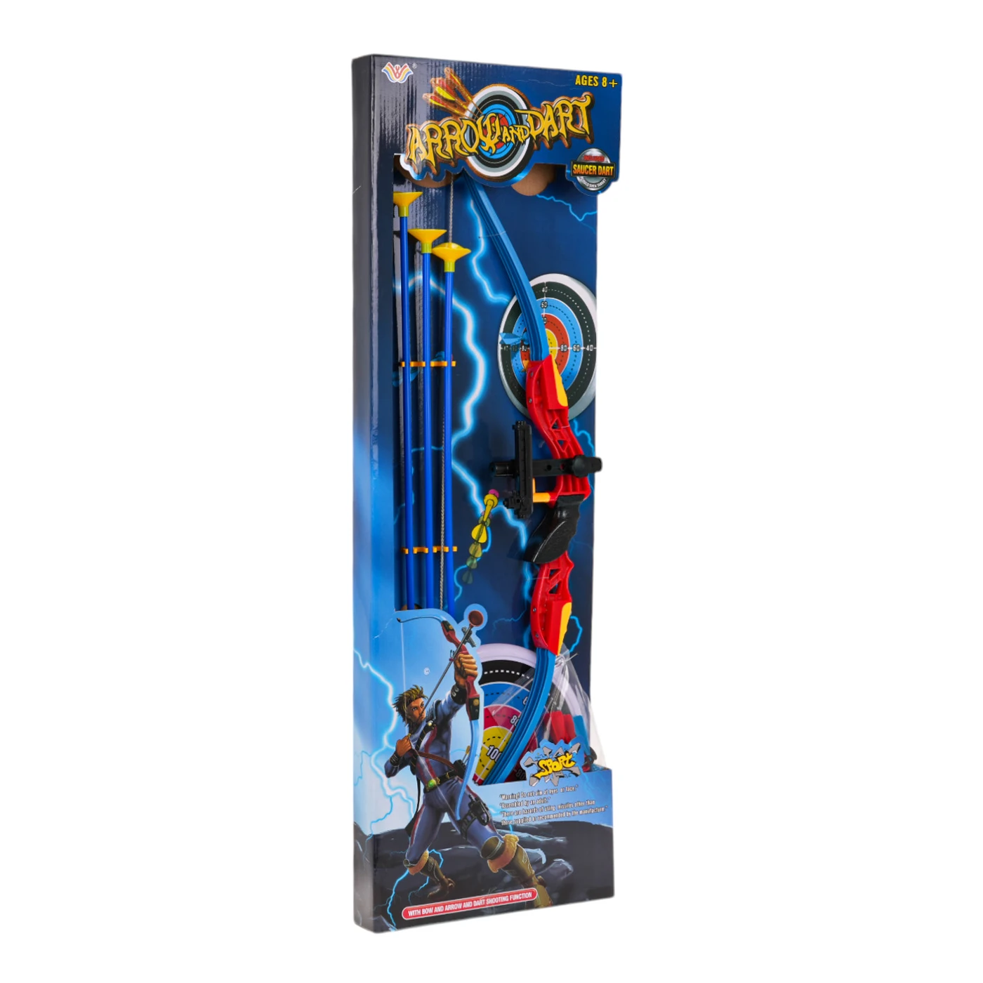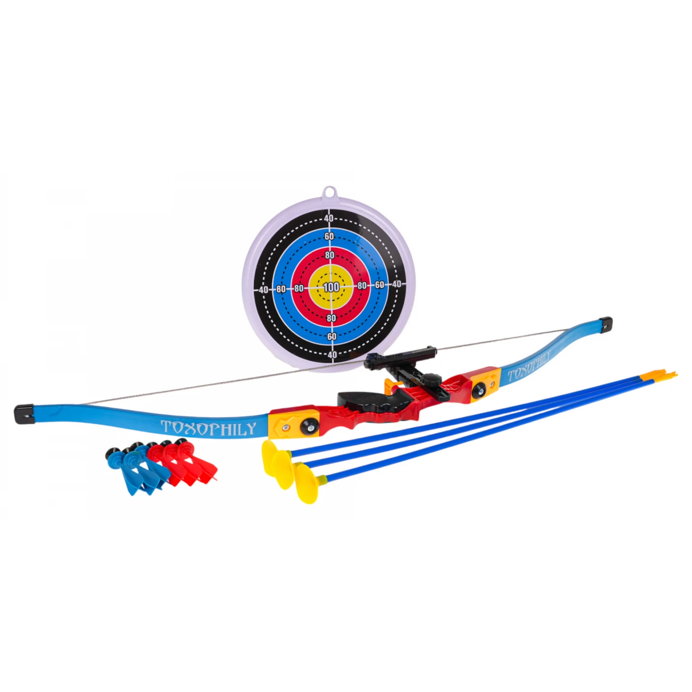 Vibu, noolte, märklaua ja noolemängu komplekt. Vibu on väga lihtne kasutada – asetage nool lihtsalt sihiku ja nööri vahele, sihtige märklauale ja laske. Komplekt sisaldab iminapaga nooli, mida saab ka lihtsalt märklaua pihta visata. Märklaual on kummist iminapp.